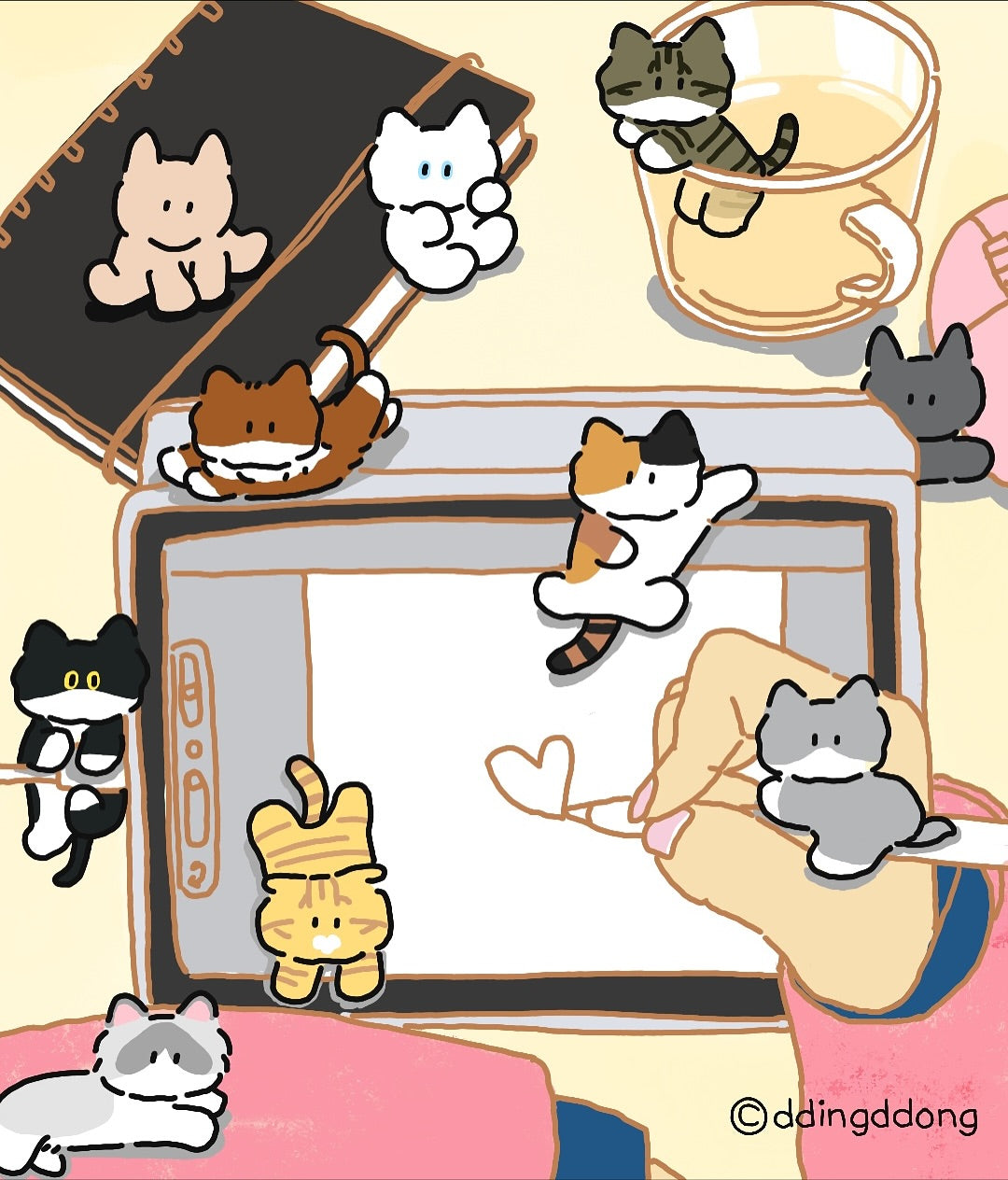DingDong Cat Stickers - Waggle Waggle Shy Cat's Daily Life